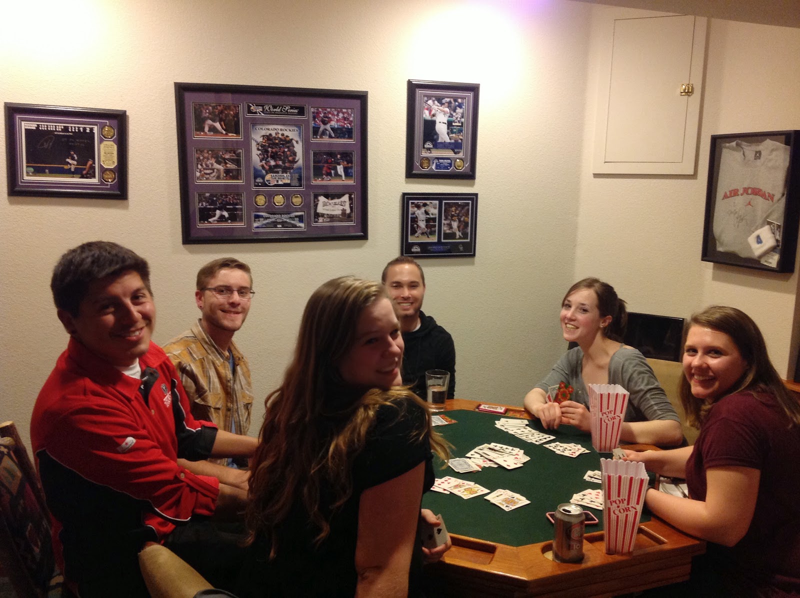 There's a wonderful sound coming from my basement - laughter! Paige is home this weekend because her best friend is visiting. It's like old times - I have a bunch of kids ( 20-22 yr olds!) in my basement popping popcorn, playing cards, and laughing hysterically at their silly antics- just like they did when they were 13! When we built this house nine years ago, we finished the basement with an ulterior motive. We thought it would increase our chances of having our kids and their friends hanging out at our house and therefore we would know what they were up to. We got our wish- boy did we ever - but a great benefit of all the popcorn, chips, and soda investments was that we got to know their friends. So it is great to see these "adopted" children every once in awhile and see what great adults they are becoming!